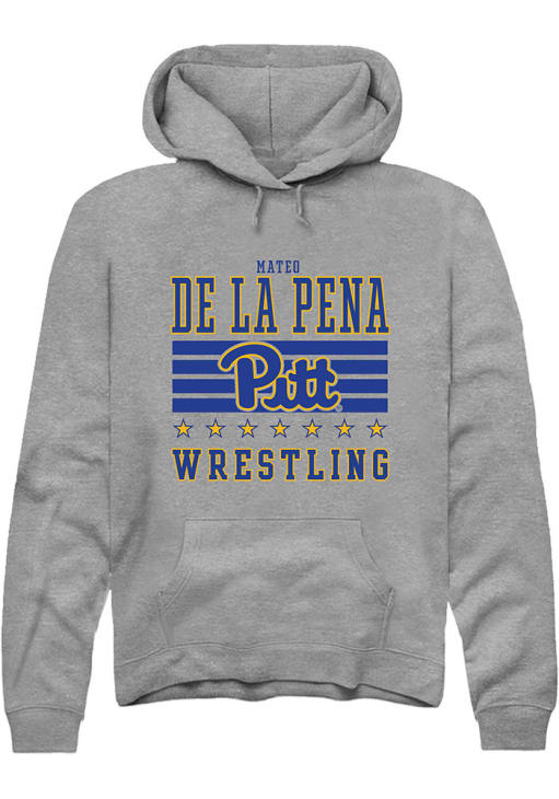 Mateo de la Pena Rally Mens Grey Pitt Panthers NIL Striped Hooded Sweatshirt