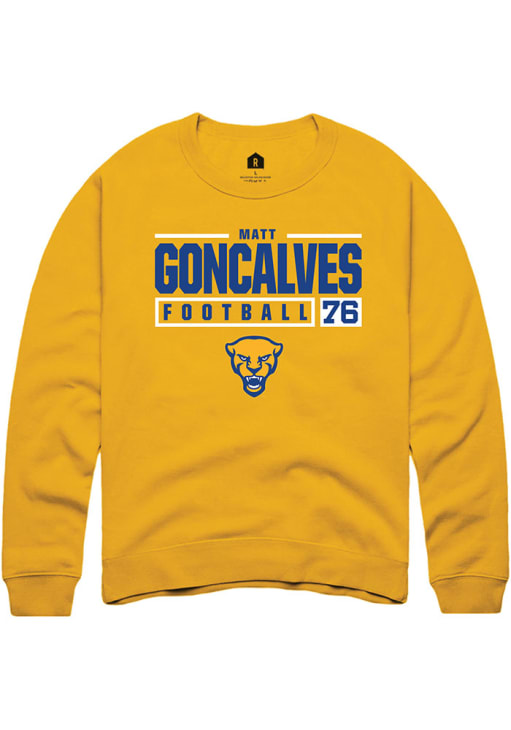 Matt Goncalves Rally Mens Gold Pitt Panthers NIL Stacked Box Crew Sweatshirt