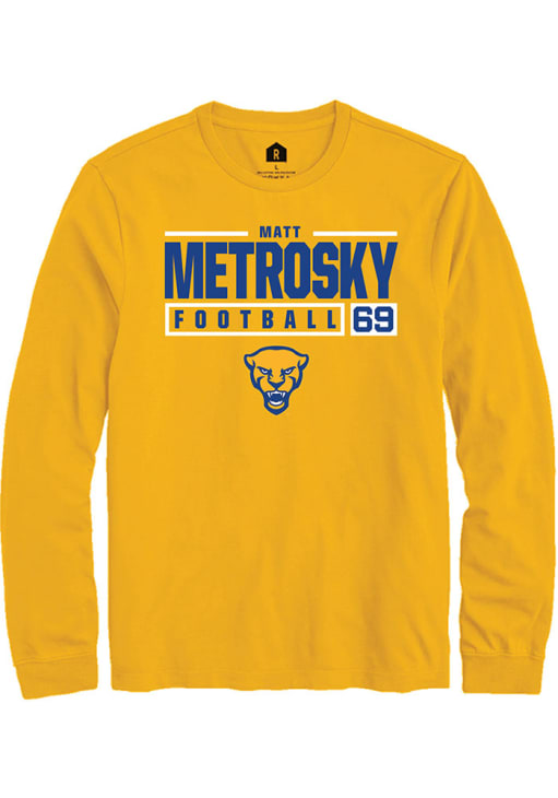 Matt Metrosky Rally Mens Gold Pitt Panthers NIL Stacked Box Tee