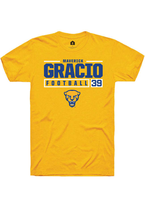 Maverick Gracio Gold Pitt Panthers NIL Stacked Box Short Sleeve T Shirt
