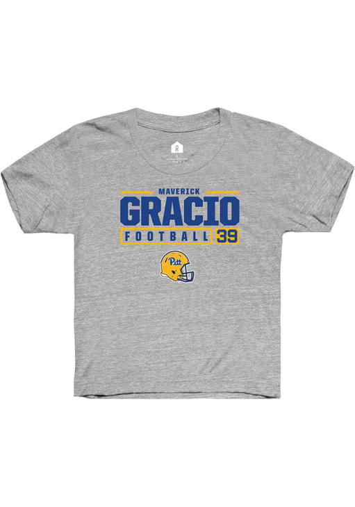 Maverick Gracio Rally Youth Grey Pitt Panthers NIL Stacked Box Short Sleeve T-Shirt