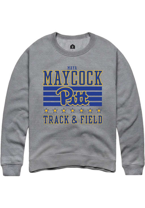 Maya Maycock Rally Mens Grey Pitt Panthers NIL Striped Crew Sweatshirt