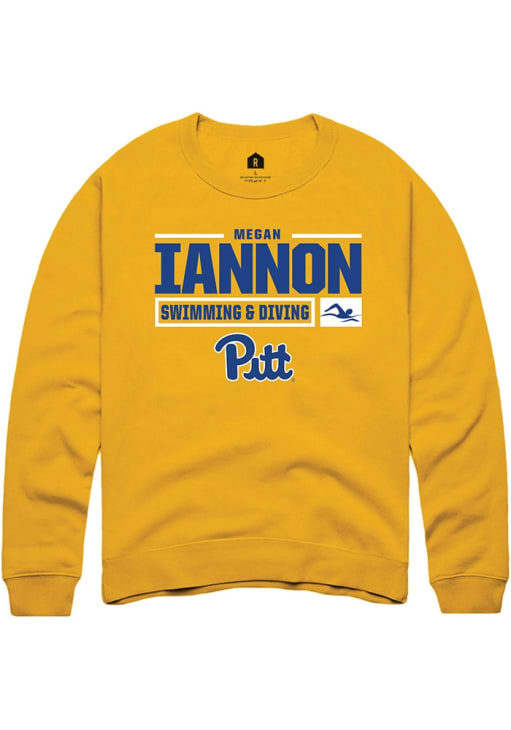 Megan Iannon Rally Mens Gold Pitt Panthers NIL Stacked Box Crew Sweatshirt