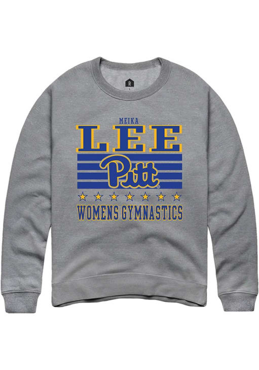 Meika Lee Rally Mens Grey Pitt Panthers NIL Striped Crew Sweatshirt