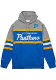 Size Chart for Mens Pitt Panthers Blue Mitchell and Ness Head Coach Design Long Sleeve Fashion Hood