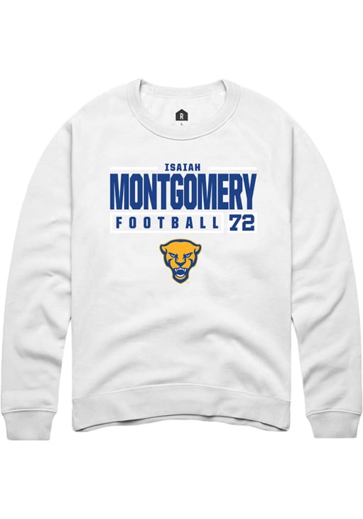 Isaiah Montgomery Rally Mens White Pitt Panthers NIL Stacked Box Crew Sweatshirt