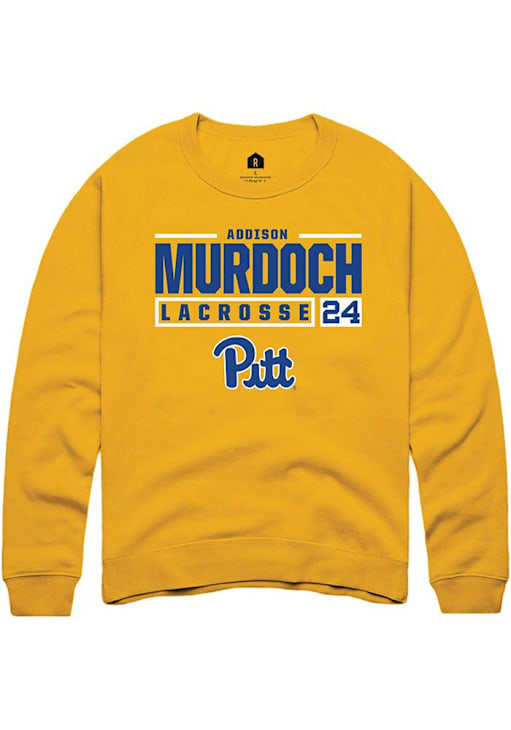 Addison Murdoch Rally Mens Gold Pitt Panthers NIL Stacked Box Crew Sweatshirt
