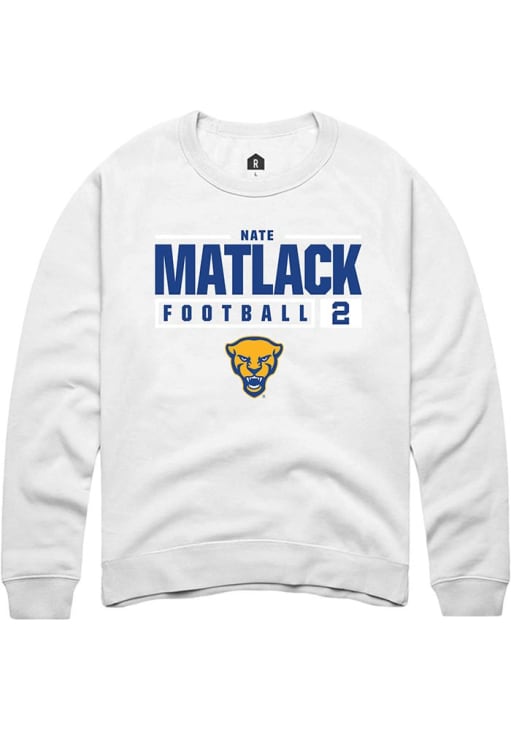 Nate Matlack Rally Mens White Pitt Panthers NIL Stacked Box Crew Sweatshirt