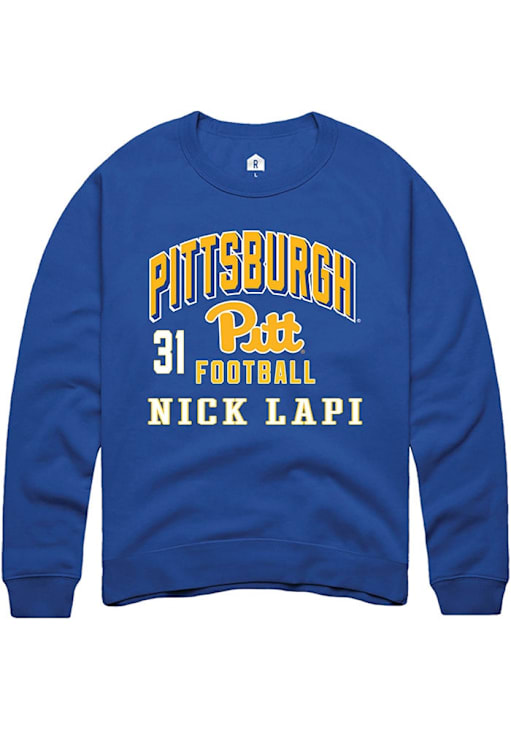 Support your Pitt Panthers and favorite Nick Lapi in this Pitt Panthers Mens Blue Football NIL Arch Logo Player Crew. This Crew Sweatshirt features a NIL graphic, and is sure to stand out in the stadium. Perfect to wear on game day or any day!