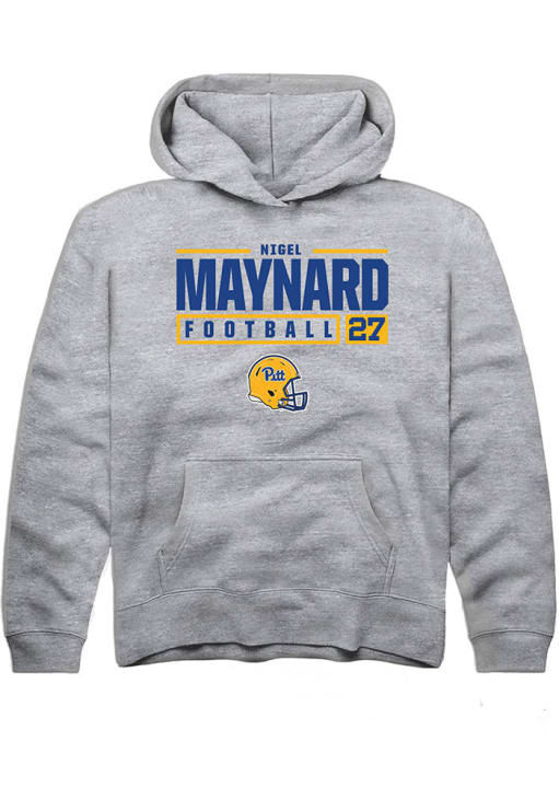 Nigel Maynard Rally Youth Grey Pitt Panthers NIL Stacked Box Long Sleeve Hooded Sweatshirt