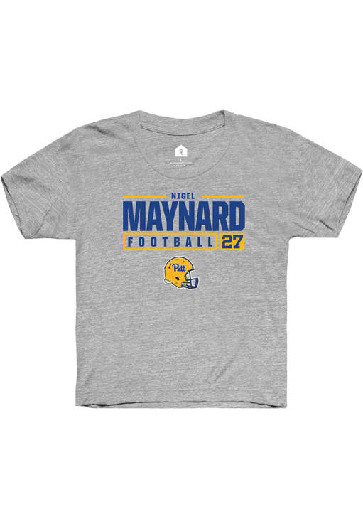 Nigel Maynard Rally Youth Grey Pitt Panthers NIL Stacked Box Short Sleeve T-Shirt