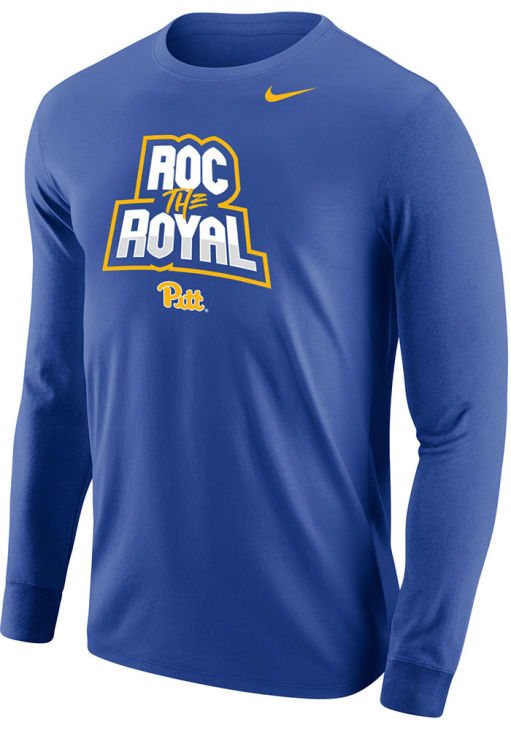 Show your Pitt Panthers spirit in this Panthers Blue T Shirt! This Panthers Roc The Royal Football Long Sleeve T Shirt makes a great layer for cooler nights cheering on the Panthers. Featuring a screen print of "ROC the ROYAL" across chest, this Pitt Panthers Long Sleeve Tee is an essential addition for every fan. Go Panthers!