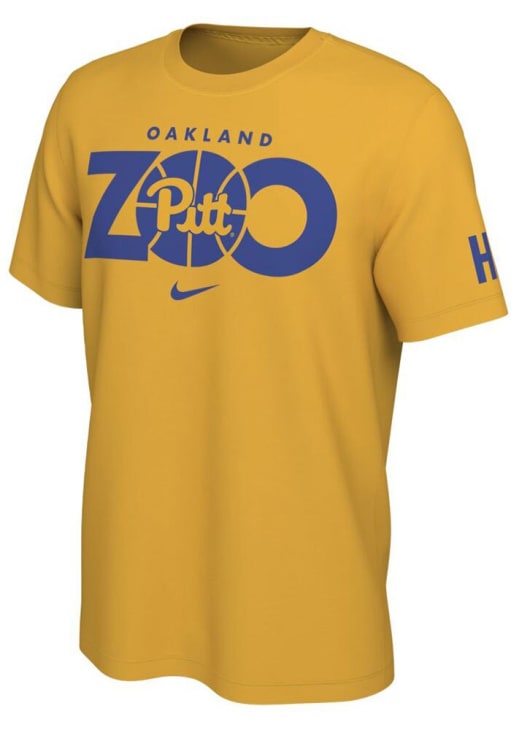 Display your team spirit with this remarkable Pitt Panthers Nike Gold Oakland Zoo Mens Basketball Short Sleeve T Shirt! The Panthers Short Sleeve Tee showcases a screen print of Oakland Zoo on front chest, with a left sleeve graphic and the Cathedral building on the back that truly sets it apart. Stand out from the crowd and proudly declare your allegiance to the Panthers with this exceptional Gold Panthers T Shirt. Go Panthers!