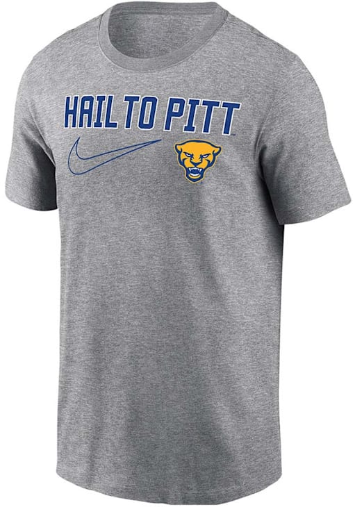 Display your team spirit with this remarkable Pitt Panthers Grey Hail To Pitt Wordmark Short Sleeve T Shirt! The Panthers Short Sleeve Tee showcases a screen print team graphic across chest that truly sets it apart. Stand out from the crowd and proudly declare your allegiance to the Panthers with this exceptional Grey Panthers T Shirt. Go Panthers!