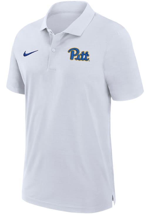 Enhance your professional style with this striking Mens White Short Sleeve Polo Shirt! Showcase your team pride among colleagues with this exceptional Panthers White Sideline Woven Short Sleeve Polo. Stand out and make a statement in this Pitt Panthers Short Sleeve Polo, featuring a embroidered team logo on left chest that adds a touch of distinction to your look.