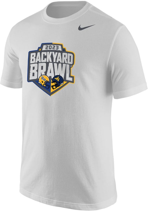 Display your team spirit with this remarkable Pitt Panthers Nike White Football Backyard Brawl Official Logo Short Sleeve T Shirt! The Panthers Short Sleeve Tee showcases a screen print graphic of the Backyard Brawl 2023 game on front chest that truly sets it apart. Stand out from the crowd and proudly declare your allegiance to the Panthers with this exceptional White Panthers T Shirt. Go Panthers!