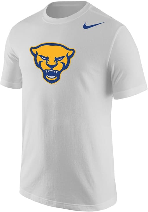 Display your team spirit with this remarkable Pitt Panthers Nike White Core Logo Short Sleeve T Shirt! The Panthers Short Sleeve Tee showcases a screen print of Panther head on front chest that truly sets it apart. Stand out from the crowd and proudly declare your allegiance to the Panthers with this exceptional White Panthers T Shirt. Go Panthers!