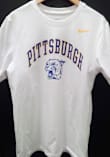 Display your team spirit with this remarkable Pitt Panthers White Dri-FIT Vintage Arch Mascot Short Sleeve T Shirt! The Panthers Short Sleeve Tee showcases a screen print of Pittsburgh arched over vintage logo that truly sets it apart. Stand out from the crowd and proudly declare your allegiance to the Panthers with this exceptional White Panthers T Shirt. Go Panthers!