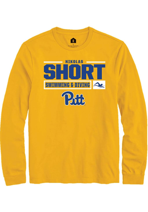 Nikolas Short Rally Mens Gold Pitt Panthers NIL Stacked Box Tee