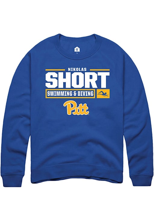 Nikolas Short Rally Mens Blue Pitt Panthers NIL Stacked Box Crew Sweatshirt