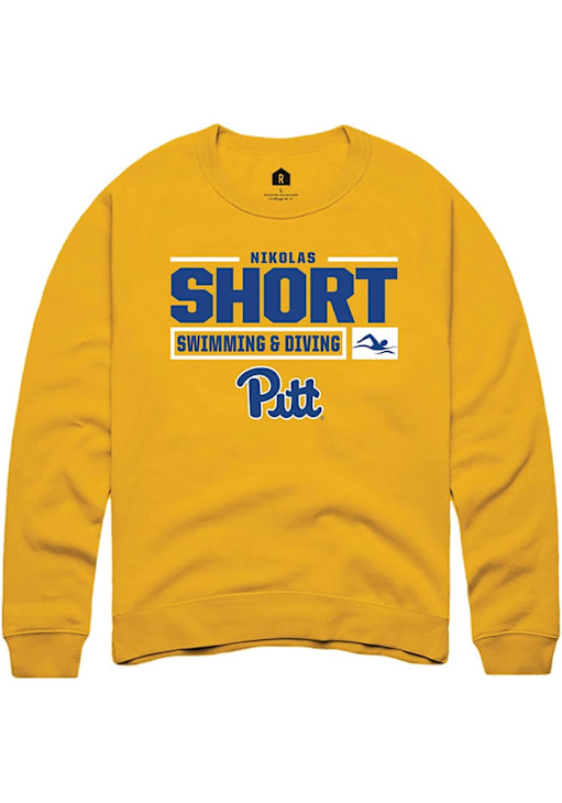 Nikolas Short Rally Mens Gold Pitt Panthers NIL Stacked Box Crew Sweatshirt