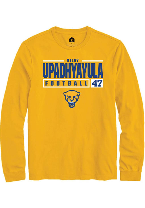 Show your Pitt Panthers spirit in this Panthers Gold T Shirt! This Panthers NIL Stacked Box Long Sleeve T Shirt makes a great layer for cooler nights cheering on the Panthers. Featuring a custom graphic with player's name and number, this Pitt Panthers Long Sleeve Tee is an essential addition for every fan. Go Panthers!