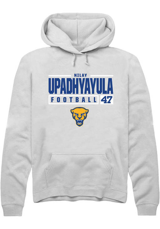 Nilay Upadhyayula Rally Mens White Pitt Panthers NIL Stacked Box Hooded Sweatshirt