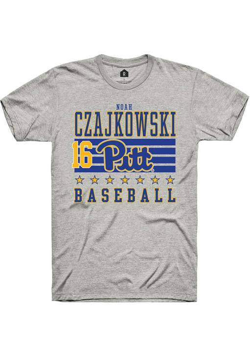 Display your team spirit with this remarkable Pitt Panthers Rally Ash NIL Striped Short Sleeve T Shirt! The Panthers Short Sleeve Tee showcases a custom graphic with player's name and number that truly sets it apart. Stand out from the crowd and proudly declare your allegiance to the Panthers with this exceptional Ash Panthers T Shirt. Go Panthers!