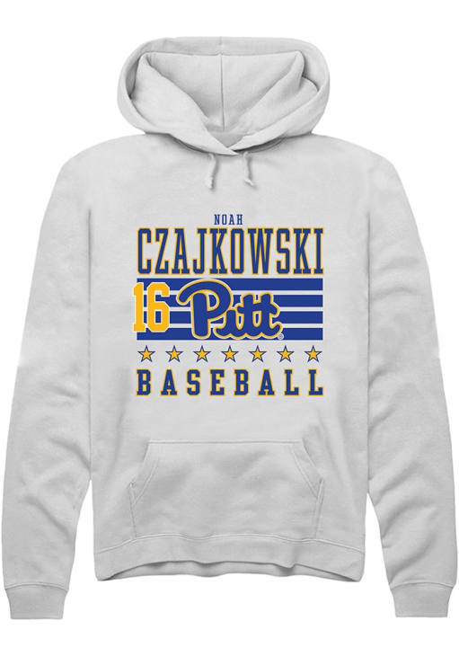 Noah Czajkowski Rally Mens White Pitt Panthers NIL Striped Hooded Sweatshirt