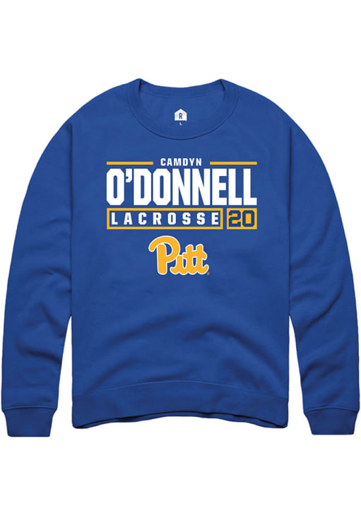 Camdyn O'Donnell Rally Mens Blue Pitt Panthers NIL Stacked Box Crew Sweatshirt