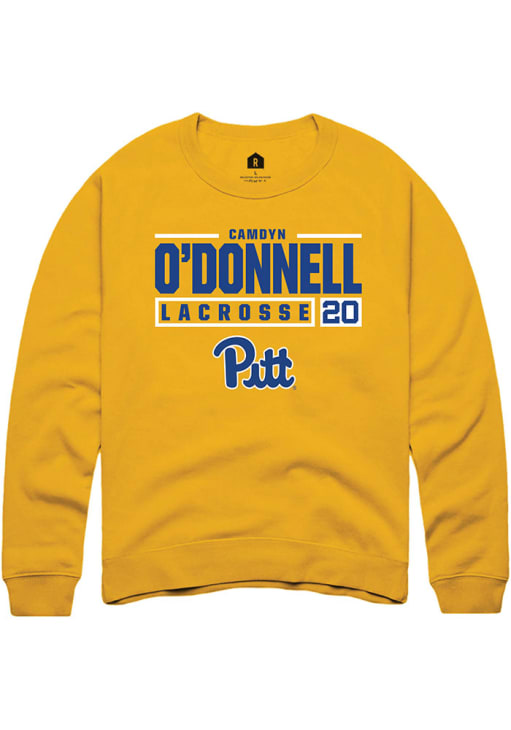 Camdyn O'Donnell Rally Mens Gold Pitt Panthers NIL Stacked Box Crew Sweatshirt