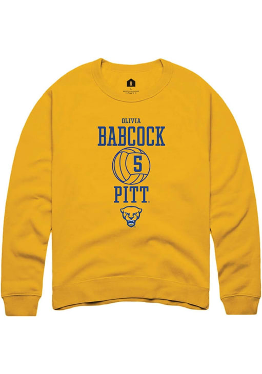 Olivia Babcock Rally Mens Gold Pitt Panthers NIL Sport Icon Crew Sweatshirt