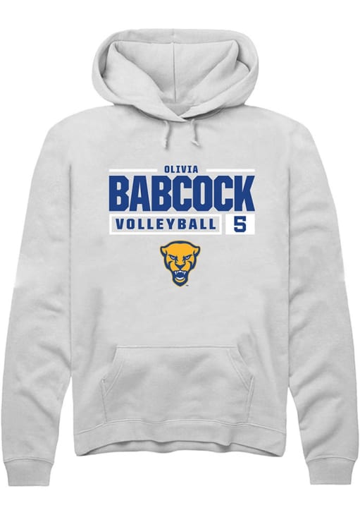 Olivia Babcock Rally Mens White Pitt Panthers NIL Stacked Box Hooded Sweatshirt