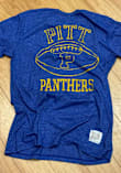 Support your Pitt Panthers in this Blue Short Sleeve Fashion Tee! This Football Fashion T Shirt features a distressed screen print of Pitt's vault logo with football graphic. Be ready to yell "Go Panthers" when you wear this Panthers Short Sleeve Fashion T Shirt in your favorite stadium or on the street.