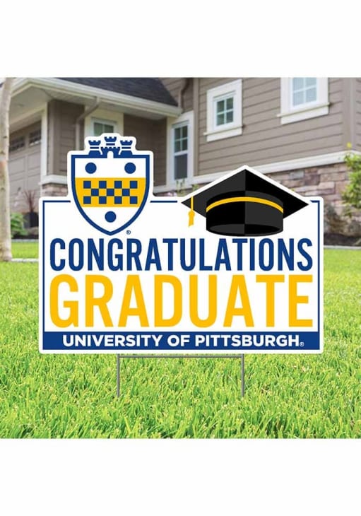Product Details Product Details Approximatley 19"x22"Cut to Shape Weatherproof PlasticMetal Stakes IncludedFull Color PrintGraduation Sign Officially Licensed Pitt Panthers Congratulations Graduate Yard Sign will let everyone know you root for the Panthers proudly. This Yard Sign features a weather resistant material.