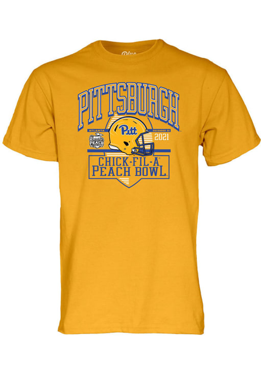 Display your team spirit with this remarkable Pitt Panthers Blue 84 Gold 2021 Peach Bowl Bound Football Short Sleeve T Shirt! The Panthers Short Sleeve Tee showcases a screen print Pittsburgh Panthers Football 2021 Elevated Bowl bound graphic on front chest that truly sets it apart. Stand out from the crowd and proudly declare your allegiance to the Panthers with this exceptional Gold Panthers T Shirt. Go Panthers!