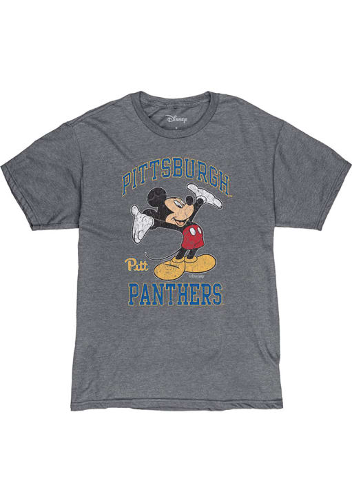 Support your Pitt Panthers in this Grey Short Sleeve Fashion Tee! This Dis Right Here Mickey Fashion T Shirt features a screen print team name arched over Mickey Mouse with team mascot name below. Be ready to yell "Go Panthers" when you wear this Panthers Short Sleeve Fashion T Shirt in your favorite stadium or on the street.