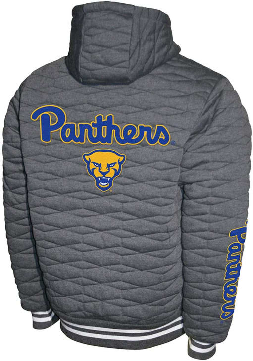 Product Details Product Details Polyester lining with poly fillHoneycomb quilted shell and hoodConcealed zippers on frontPouch front pocketsZippered chest pocket100% POLYESTER Officially Licensed Embrace your Panthers spirit with pride in this Pitt Panthers Long Sleeve Zip Fashion. This Mens Charcoal H-Quilt Hooded Fleece Long Sleeve Zip showcases a embroidered and appliqué team logo on left chest, logo and wordmark on back and left sleeve. You'll want to wear this Pitt Panthers Long Sleeve Zip Fashion every day.