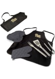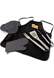 Product Details Product Details Folds into easy-to-carry toteAdjustable shoulder strapTote folds out in to apron with team logoDeluxe BBQ set stored in side3 stainless steel BBQ toolsComes with chef's hatPerfect for barbecues, picnics, and campingPolyester ToteImported Officially Licensed Pitt Panthers Apron Set will show your {Mascot Alia} pride. This Apron Set features a team logo and will look great at any tailgate. Go Panthers!
