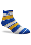 Product Details Product Details Elastic cuffs for comfortable fitEmbroidered team logoSoft, fuzzy fabricWomens shoe size 6-11 Officially Licensed Make sure you're decked out with Panthers spirit by getting these awesome Pitt Panthers Skip Stripe Womens Quarter Socks! Rally House is sure you'll like these Quarter Socks featuring a team logo on team color background.