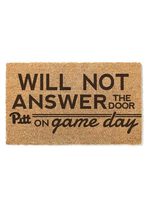 Product Details Product Details Made from high-quality natural coconut fiberMeasures 18x30Vinyl backing helps keep the mat in placeTeam logoGreat way to enhance any entryway or patio! Officially Licensed This Pitt Panthers Door Mat is a great way to greet guests. Dress up your porch with this Door Mat, which features a message for anyone interrupting your game day.
