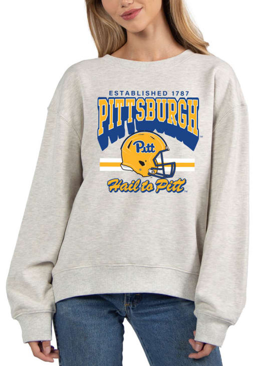 Gear up for the ultimate game day experience with this remarkable Pitt PanthersWomens Ash Old school Crew Sweatshirt! Designed with the true fan in mind, this Panthers Long Sleeve Sweatshirt features a screenprint team name and team logo on center chest. Stay warm and comfortable with this Womens Panthers Panthers Crew Sweatshirt.