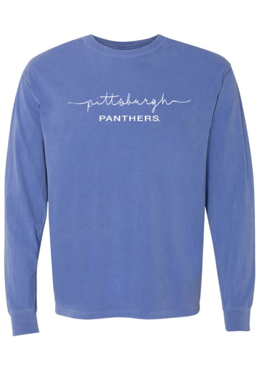 Show your Pitt Panthers spirit in this Panthers Blue T-Shirt! This Panthers Classic Script Long Sleeve T-Shirt makes a great layer for cooler nights cheering on the Panthers. Featuring a center front screen print team name, this Pitt Panthers Long Sleeve LS Tee is an essential addition for every fan. Go Panthers!