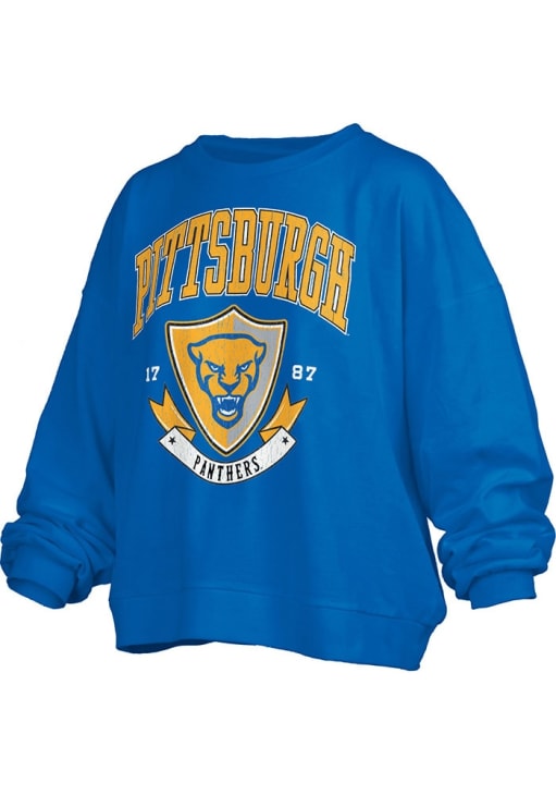 Gear up for the ultimate game day experience with this remarkable Pitt PanthersWomens Blue Buckler Janise Crew Sweatshirt! Designed with the true fan in mind, this Panthers Long Sleeve Sweatshirt features a screen print team name and logo on center chest. Stay warm and comfortable with this Womens Panthers Panthers Crew Sweatshirt.