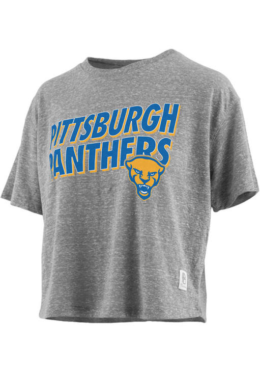 Display your team spirit with this remarkable Pitt Panthers Grey Knobi Waist Short Sleeve T-Shirt! The Panthers Short Sleeve Tee showcases a screen print team name and logo on center front that truly sets it apart. Stand out from the crowd and proudly declare your allegiance to the Panthers with this exceptional Grey Panthers T-Shirt. Go Panthers!