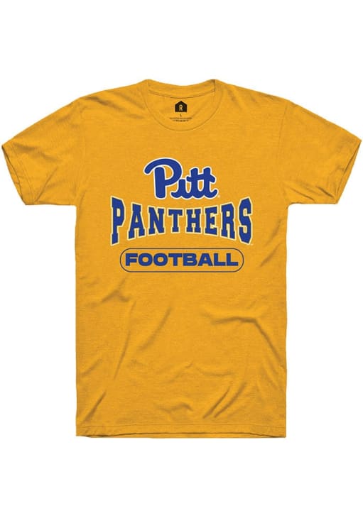 Display your team spirit with this remarkable Pitt Panthers Gold Football Short Sleeve T Shirt! The Panthers Short Sleeve Tee showcases a digitally printed graphic that truly sets it apart. Stand out from the crowd and proudly declare your allegiance to the Panthers with this exceptional Gold Panthers T Shirt. Go Panthers!