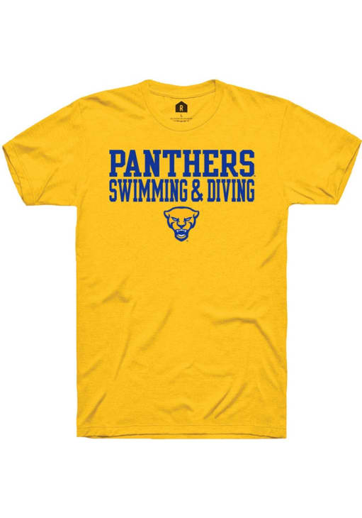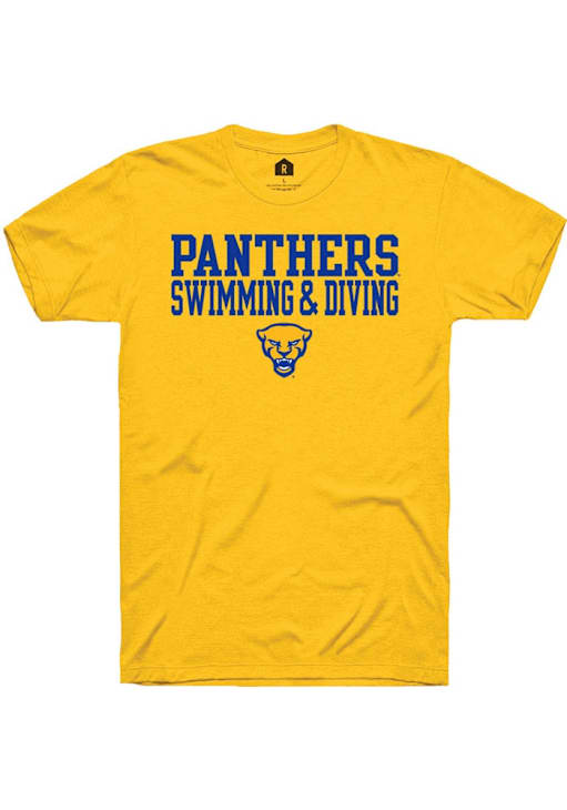 Display your team spirit with this remarkable Pitt Panthers Rally Gold Swim and Dive Short Sleeve T Shirt! The Panthers Short Sleeve Tee showcases a screenprint team graphic on front chest that truly sets it apart. Stand out from the crowd and proudly declare your allegiance to the Panthers with this exceptional Gold Panthers T Shirt. Go Panthers!