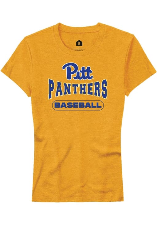 Display your team spirit with this remarkable Pitt Panthers Gold Baseball Short Sleeve T-Shirt! The Panthers Short Sleeve Tee showcases a digitally printed graphic that truly sets it apart. Stand out from the crowd and proudly declare your allegiance to the Panthers with this exceptional Gold Panthers T-Shirt. Go Panthers!