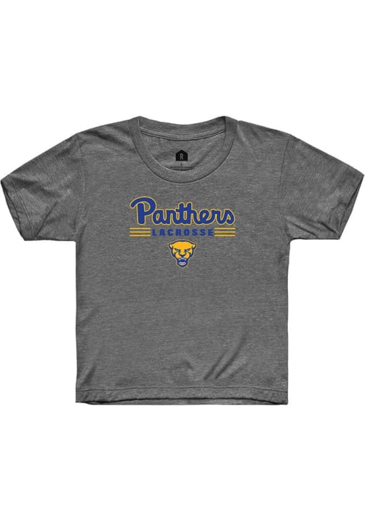Product Details Product Details Tagless neck labelTaped neck and shoulders for durabilityModern classic fitClassic width, rib collarMade with OEKO-TEX certified low-impact dyesClassic Fit100% Ringspun CottonHits At Hip Officially Licensed Your future Pitt Panthers will be gameday ready in this CharcoalYouth Short Sleeve Tee. This Lacrosse T-Shirt features a digitally printed graphic.