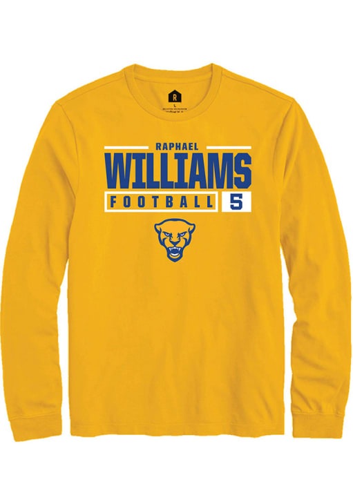 Raphael Williams Rally Mens Gold Pitt Panthers NIL Stacked Box Tee
